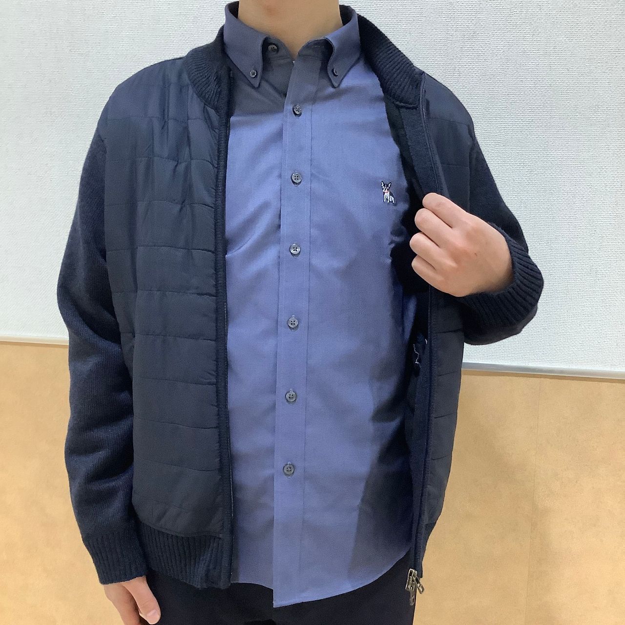 ・ニットブルゾンとオックスフォードシャツのコーデ