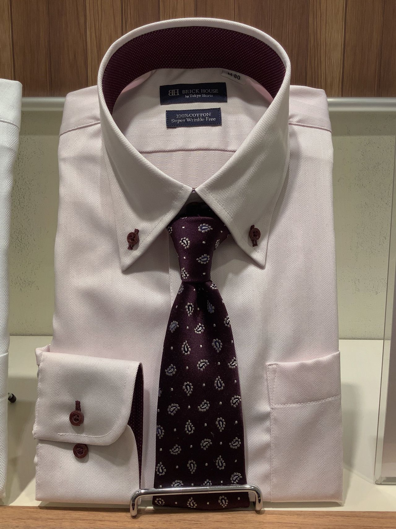 ピンクの色味が春にぴったりな超形態安定シャツ【綿100%】