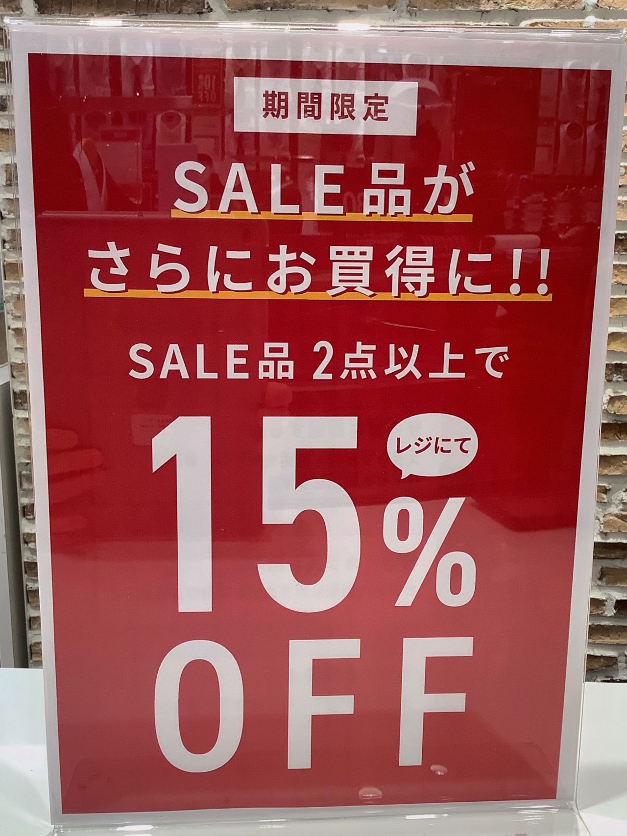 セール品・ネクタイを2点以上でレジにて15%OFF