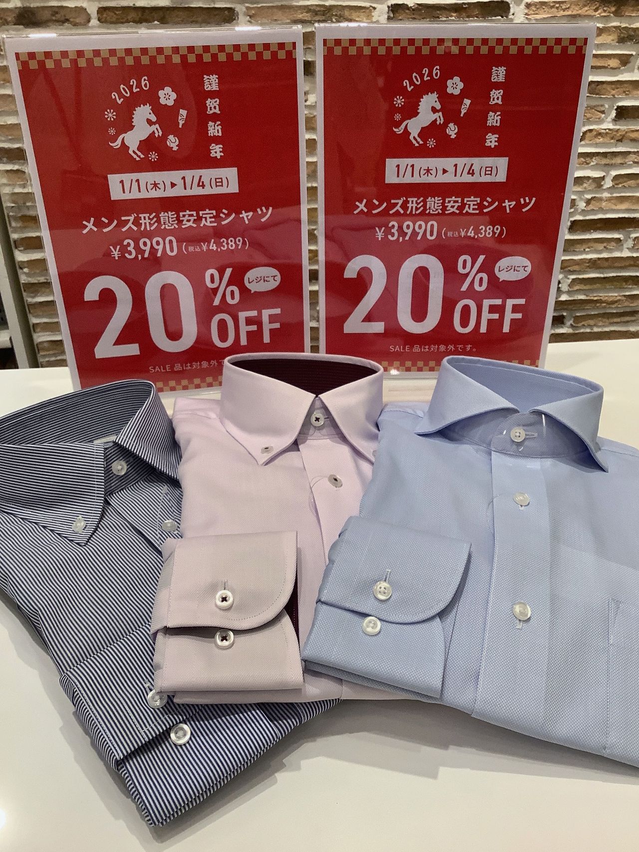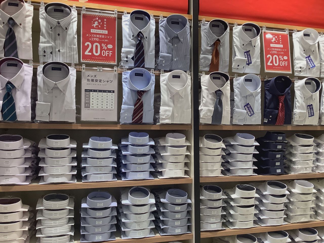 メンズ形態安定シャツ 税抜¥3,990がレジにて20%OFF