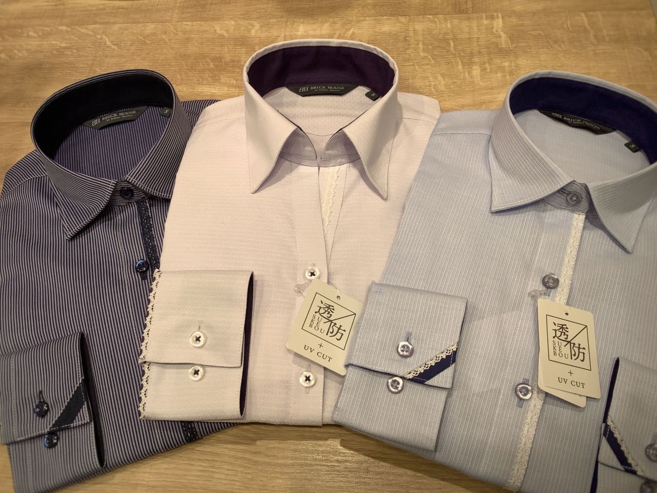 透け防止素材でレース刺繍がポイントの長袖シャツ♩