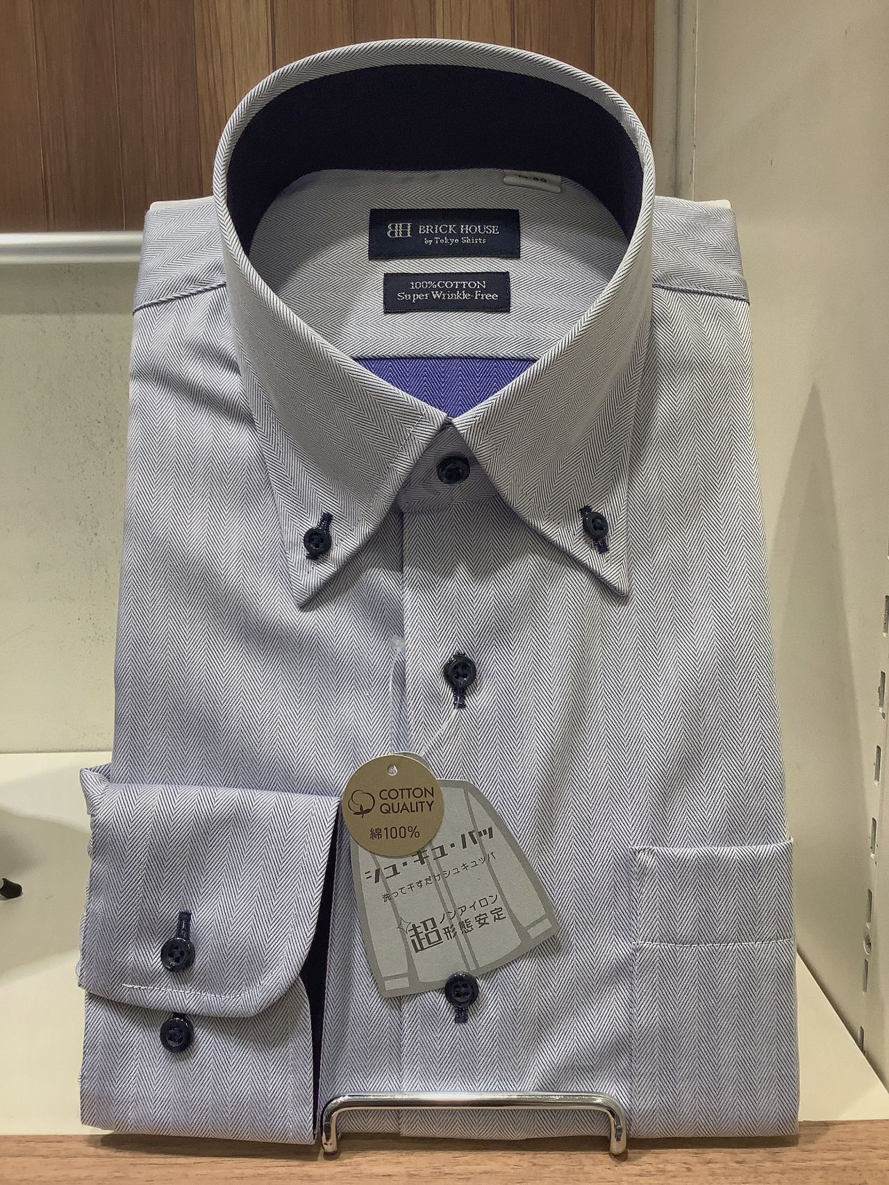 綿100%素材のボタンダウンシャツ