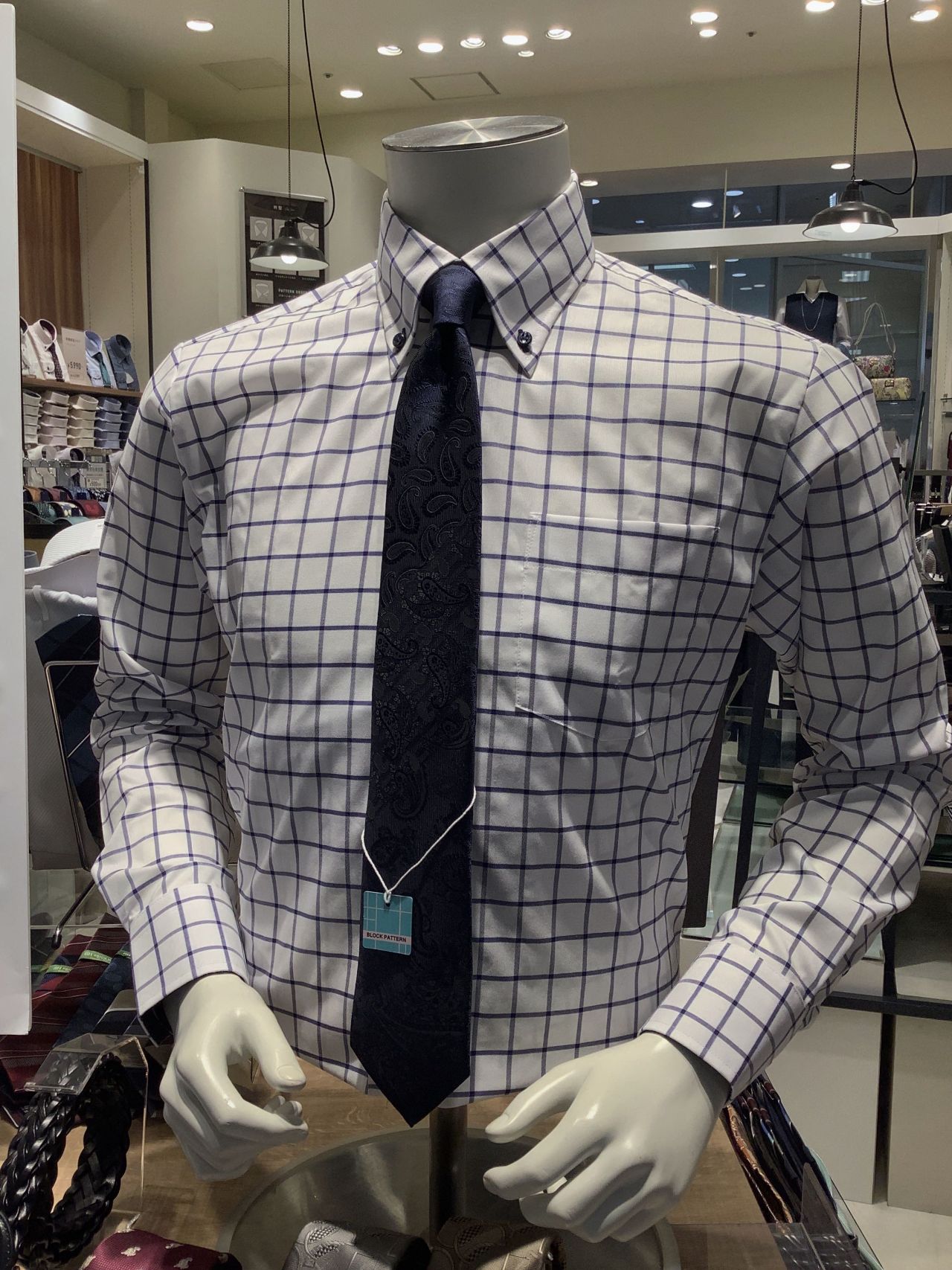 今の時期にはシンプルながら織柄が特徴的なネクタイをコーディネート