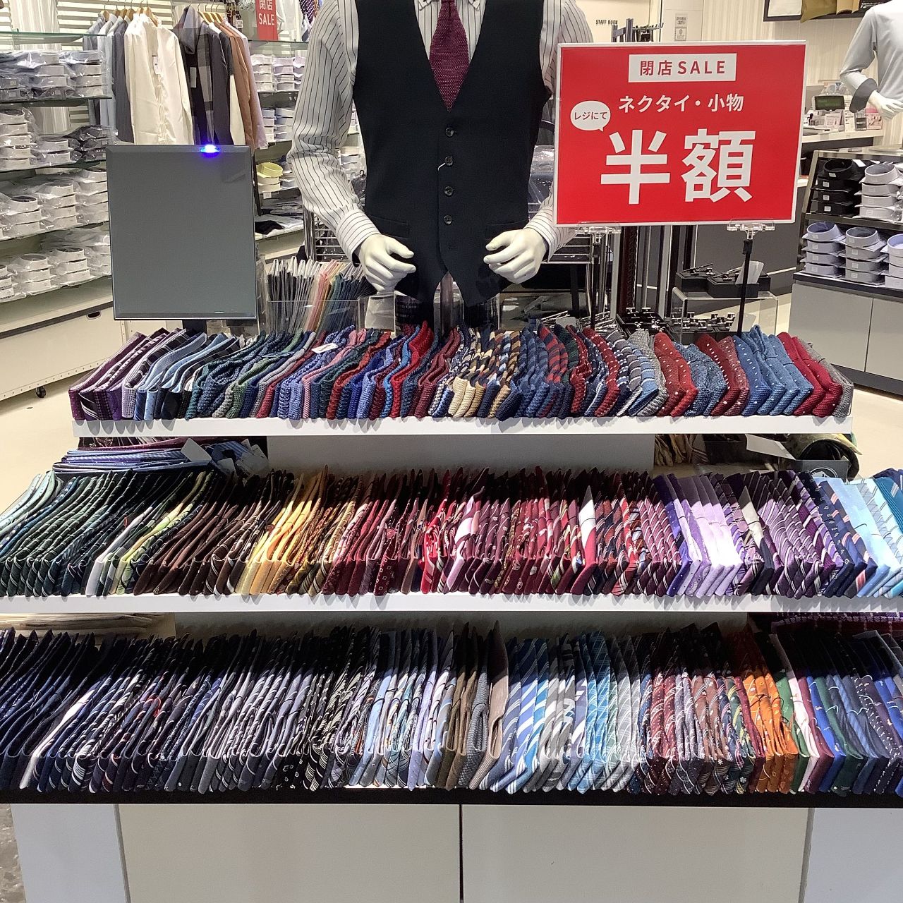 筑紫野店限定でネクタイはなんと一部商品を除いて全品半額なのです。