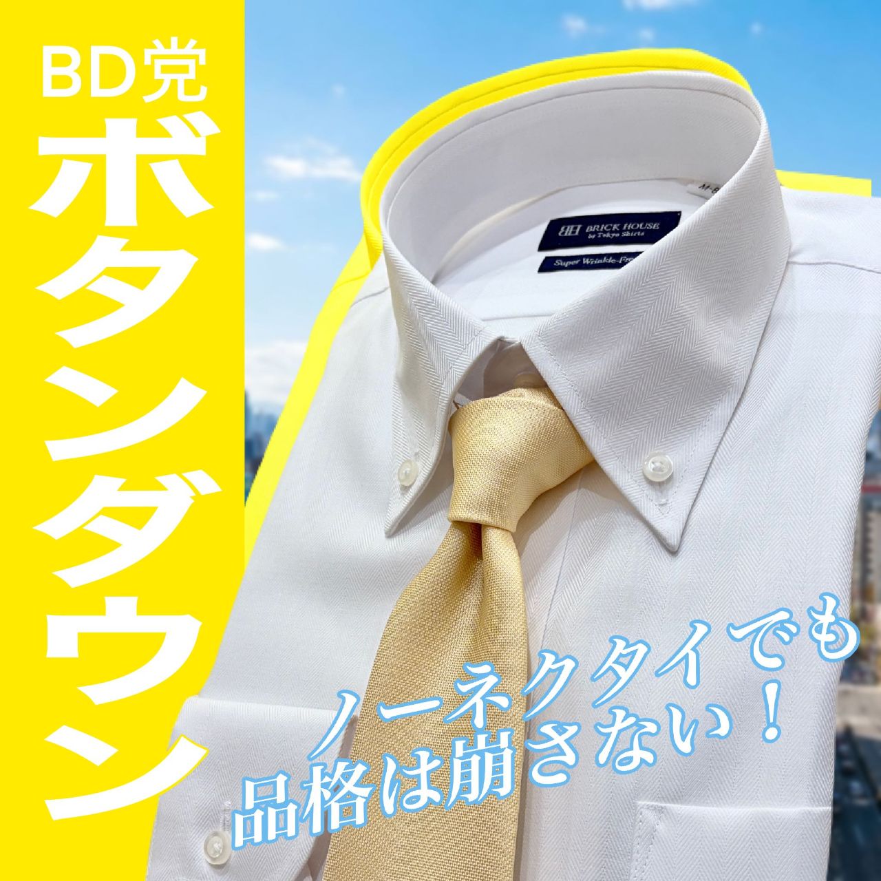 「ネクタイなしでも、襟きまる!」