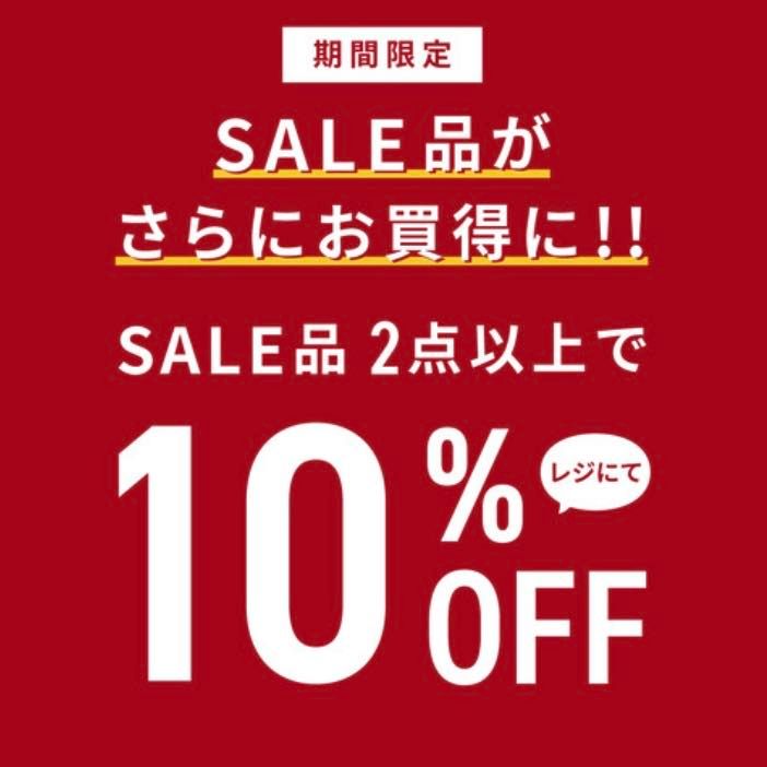 SALE品を2点以上お選びいただくと、レジにてさらに10%OFF