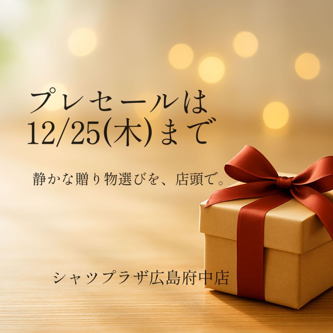 「プレセールは12/25まで。静かな贈り物選びを、店頭で。」
