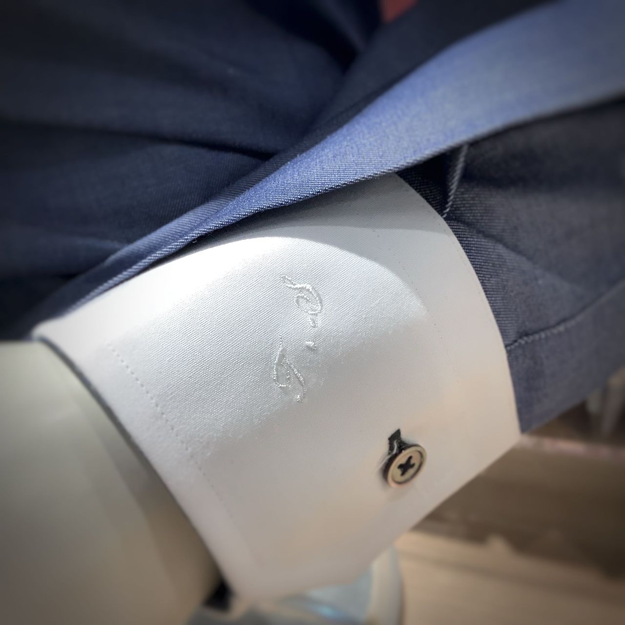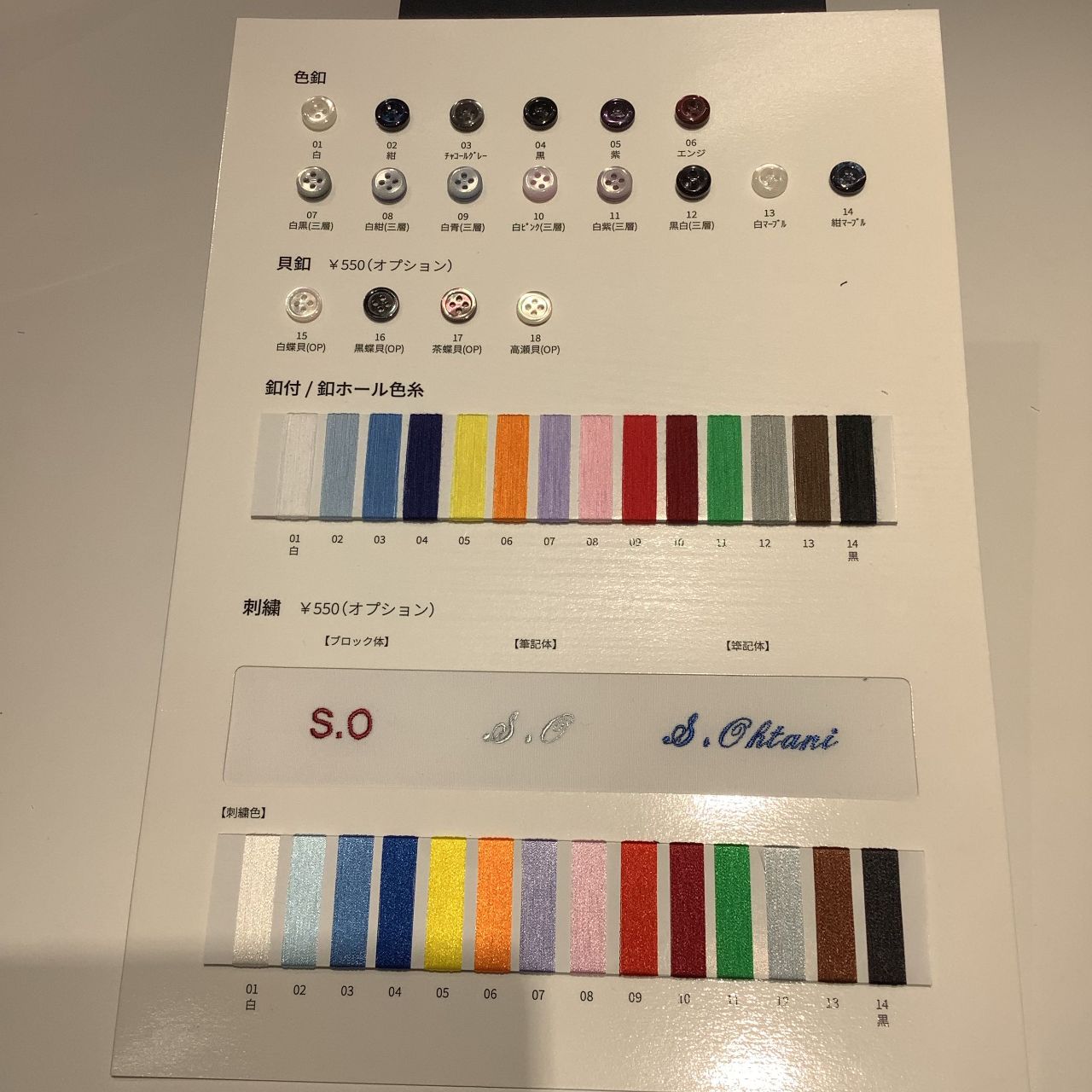 例)別生地仕様+貝ボタン+刺繍
