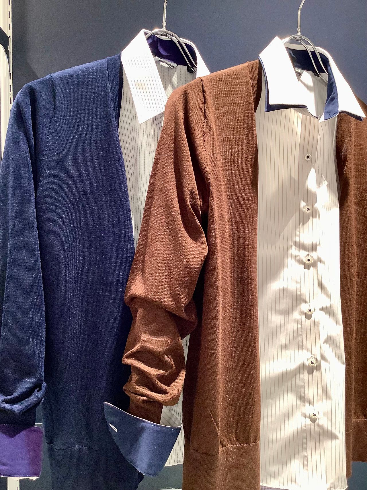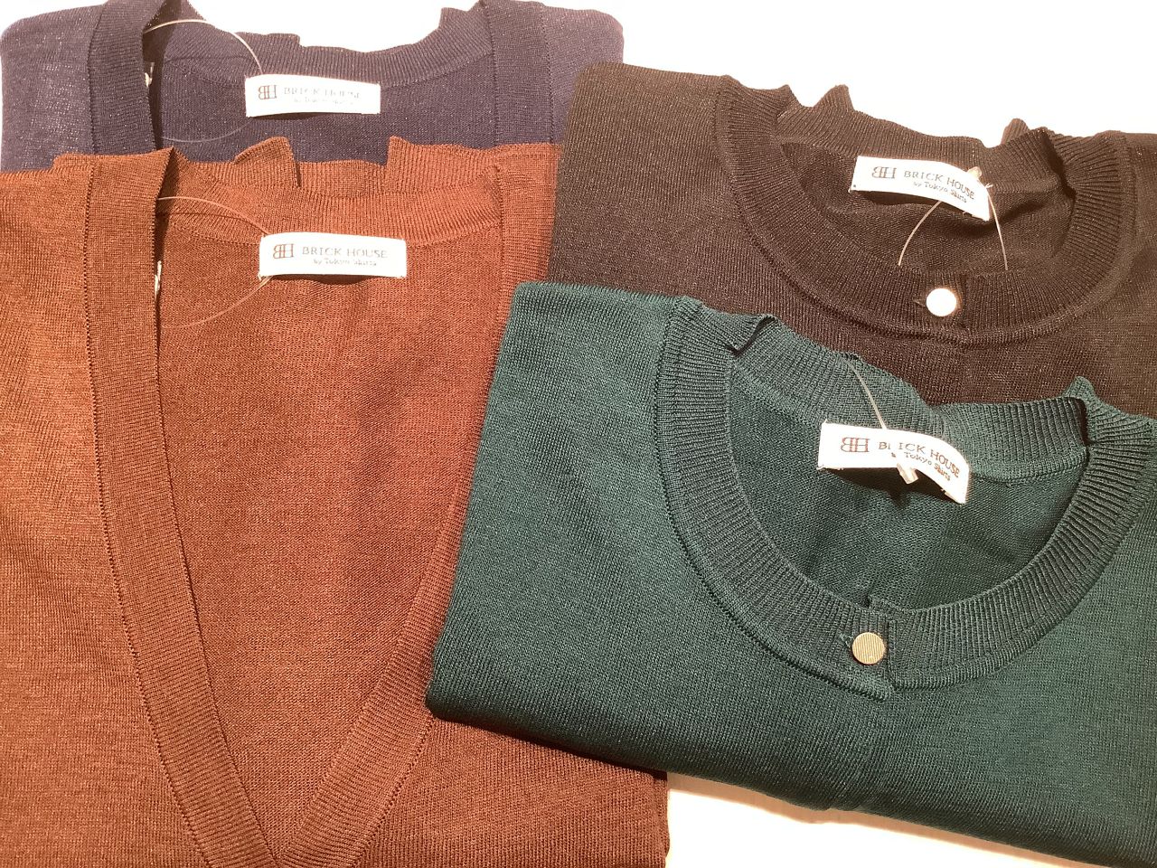 Vネックのネイビー、ブラウン。