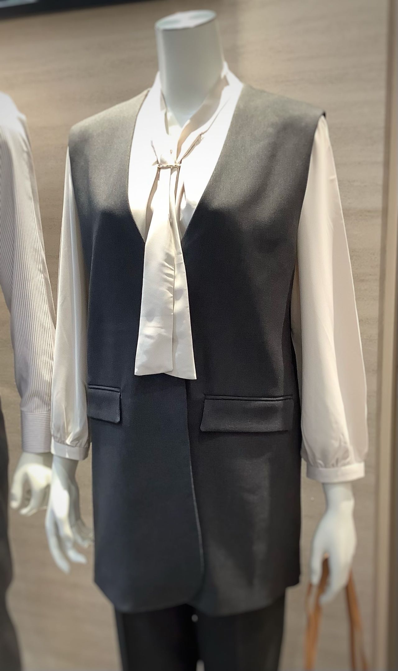 新作のブラウスにはジレとの重ね着がオススメです♪