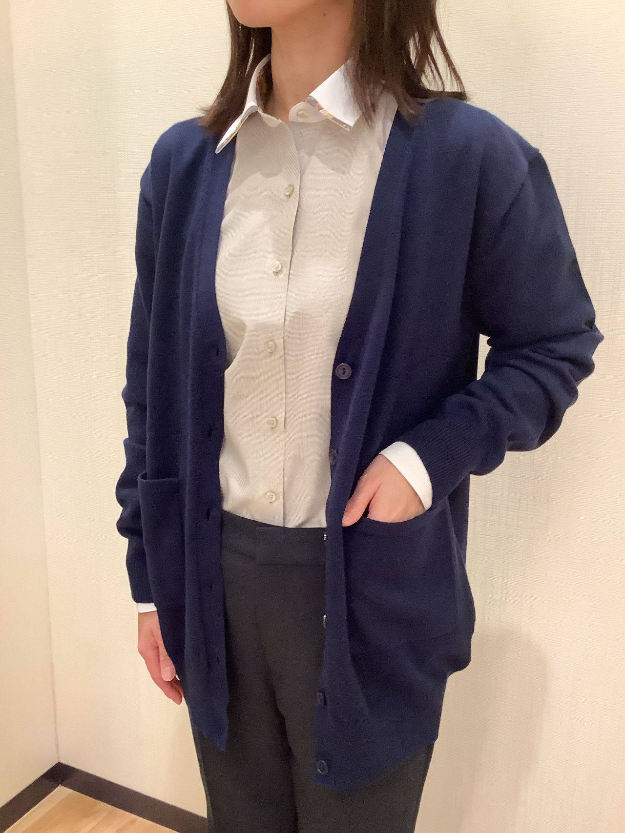 待望のちょい丈長めポケットカーディガン