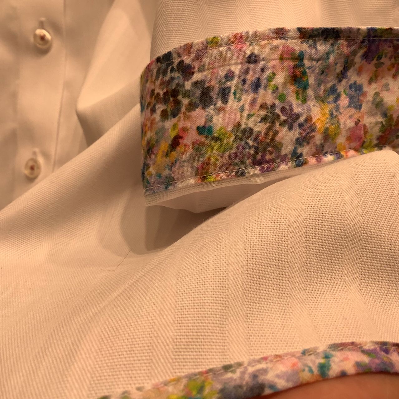 七分袖の可愛い花柄とパイピングも素敵