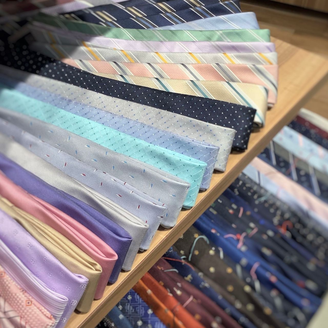 店頭のネクタイも春っぽい♡