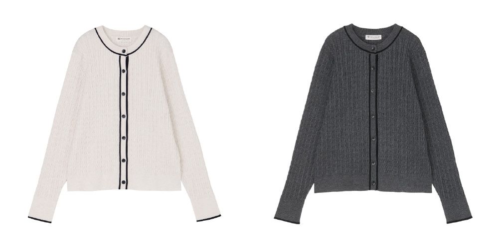 ●ニット アンチピリング 配色ケーブル カーディガン レディース