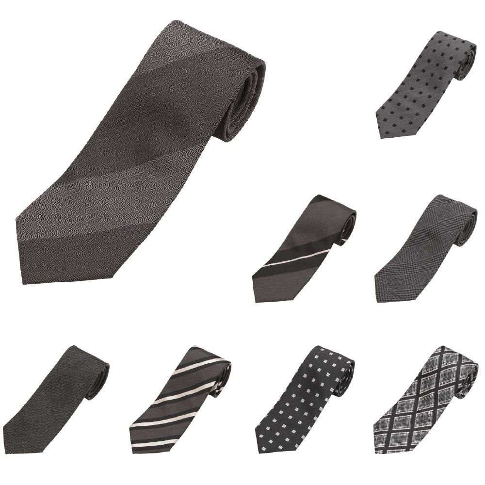 モノトーンのネクタイはどんなシャツやニット、スーツにも合わせやすい万能カラー。