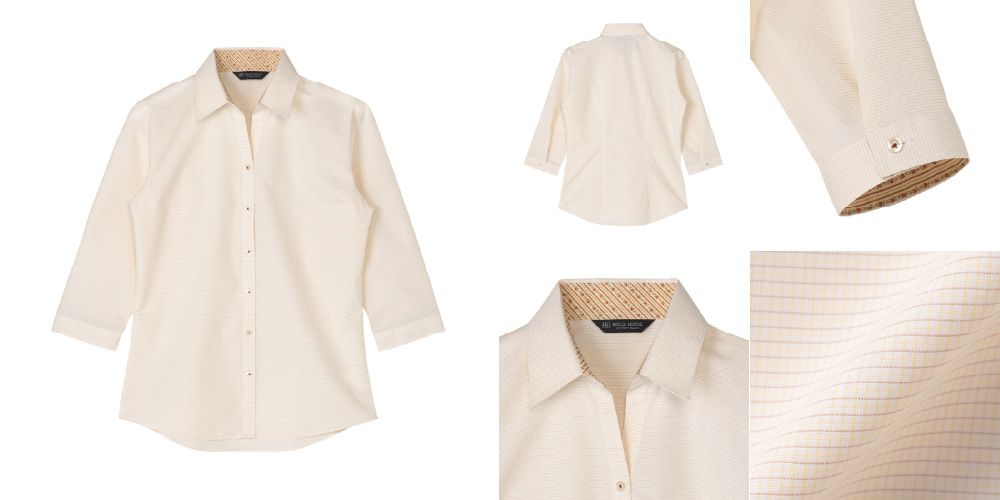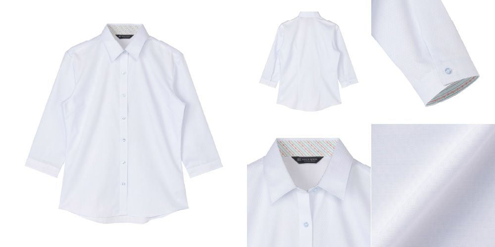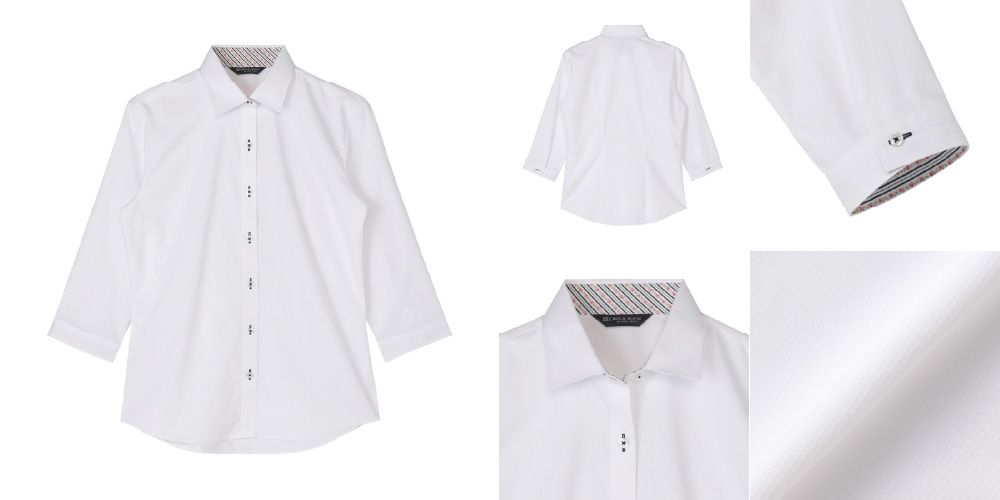 ●【透け防止】 ワイド 七分袖 形態安定 レディースシャツ(ホワイト)