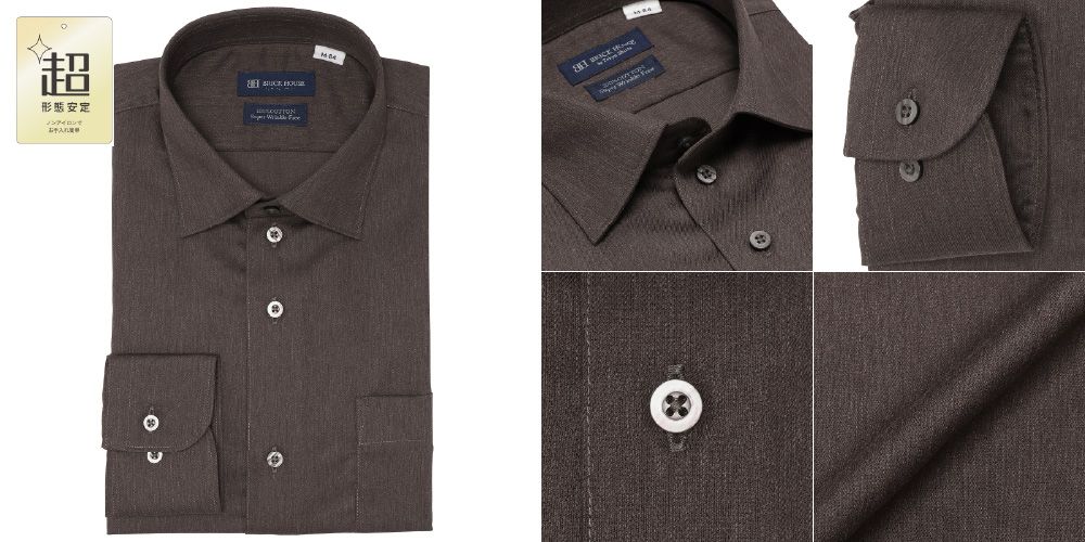 ●【超形態安定】 ワイド 長袖 形態安定 綿100% ワイシャツ(ブラウン)