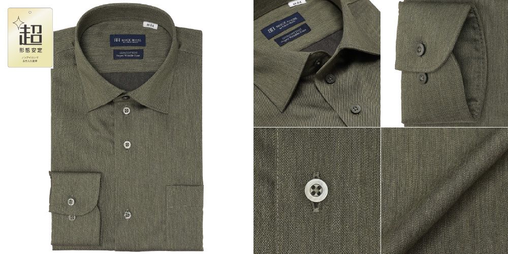 ●【超形態安定】 ワイド 長袖 形態安定 綿100% ワイシャツ(カーキグリーン)