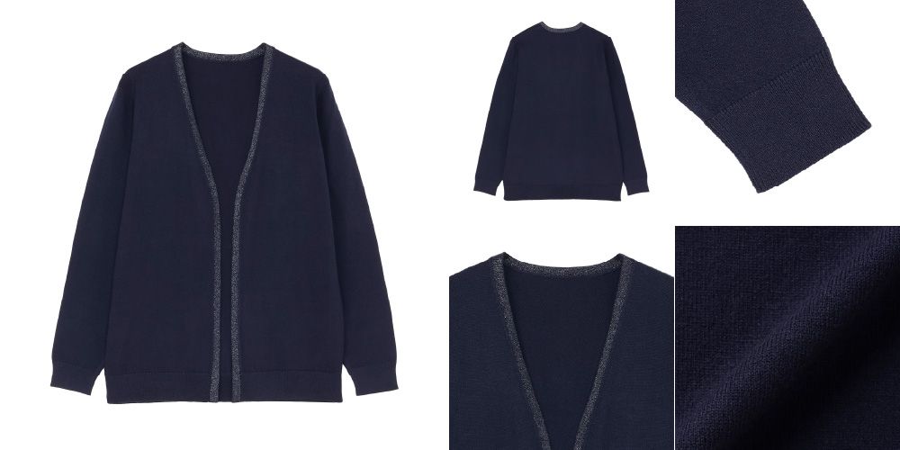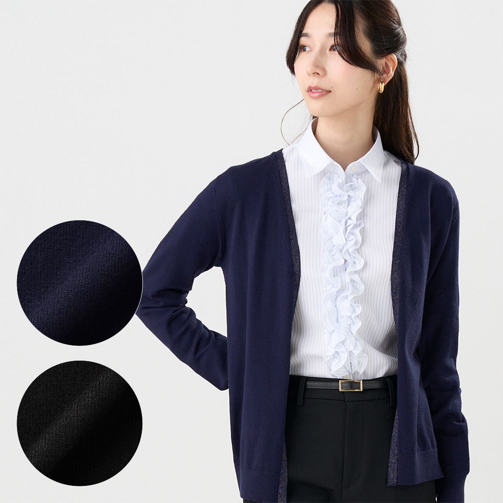 ●ニット ラメトッパーカーディガン 長袖 レディース(ネイビー)