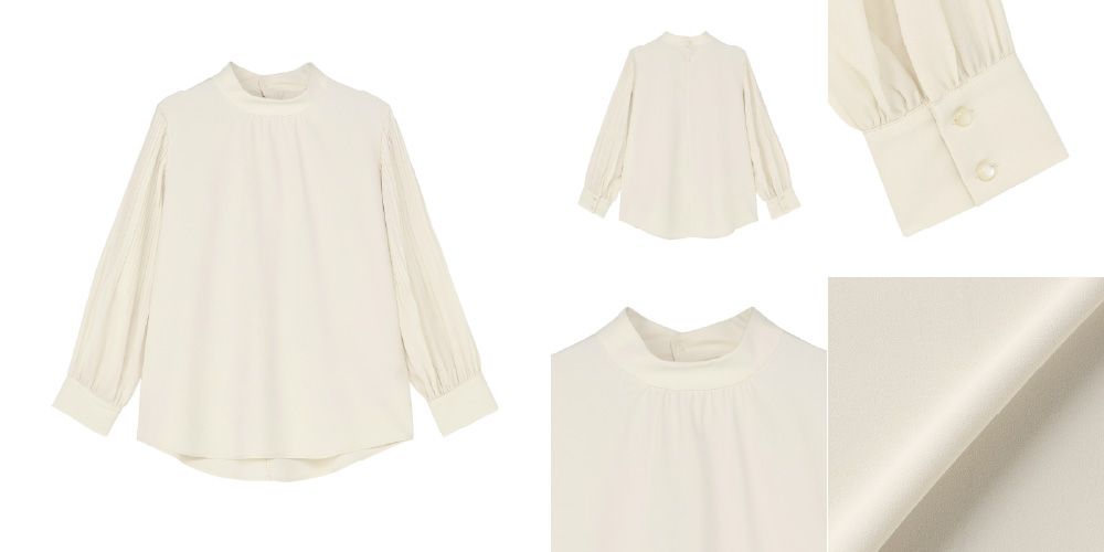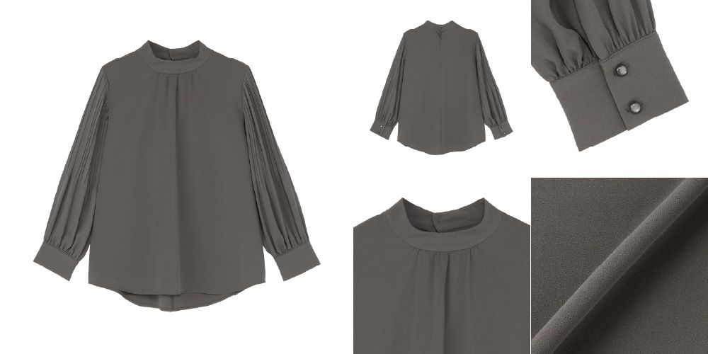 ●ストレッチジョーゼット 袖プリーツ ハイネック ブラウス 長袖 レディース