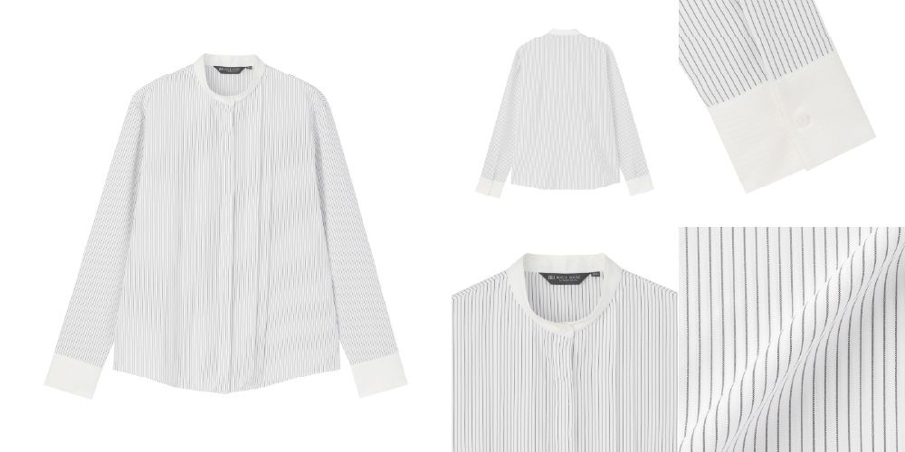 先日入荷してきたのは東京シャツの中でも定番型の【スタンドゴムシャーリングブラウス】 、 【スタンド配色ブラウス】。