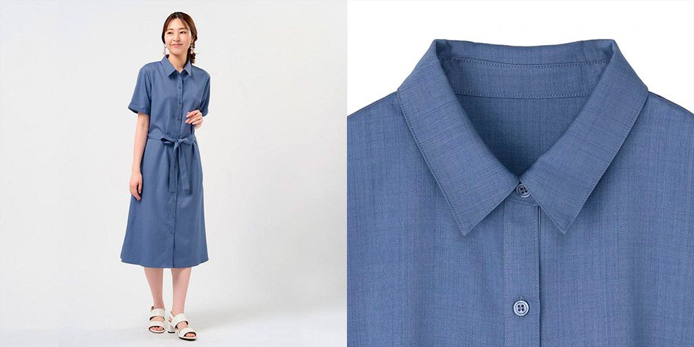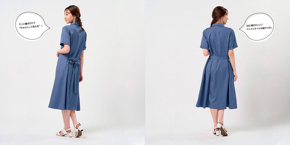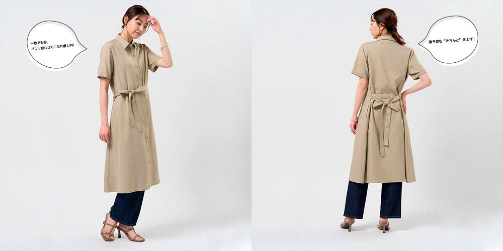 こちらのシャツワンピースは、ポリエステルの麻調素材が季節感を与えてくれて、さらっと快適に。