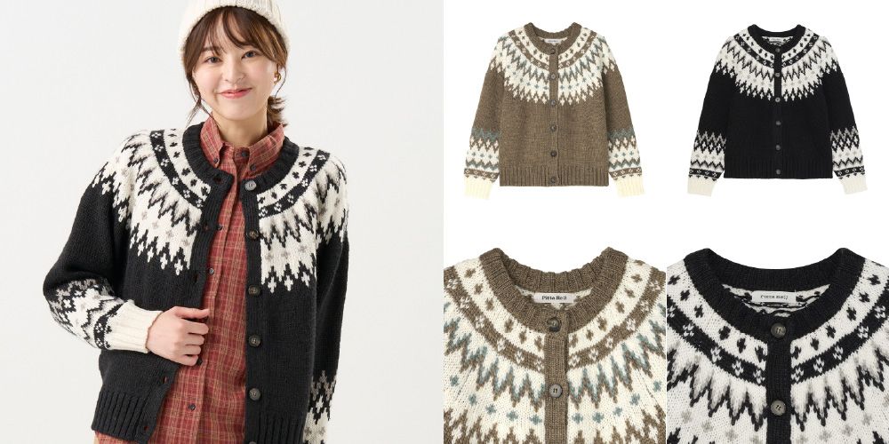 ●【Pitta Re:)】 ニット 求心 ジャカード カーディガン レディース(全2色)