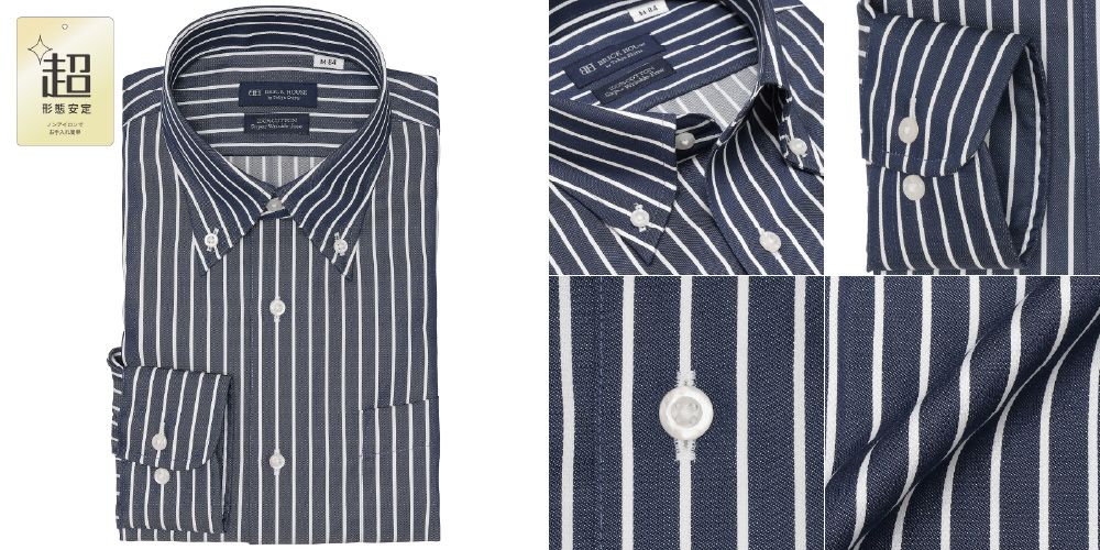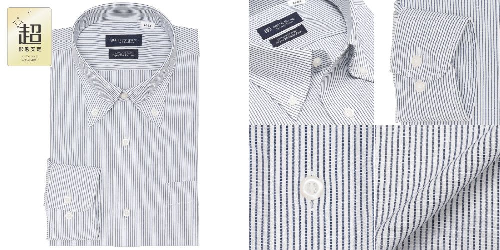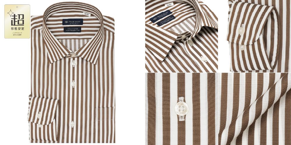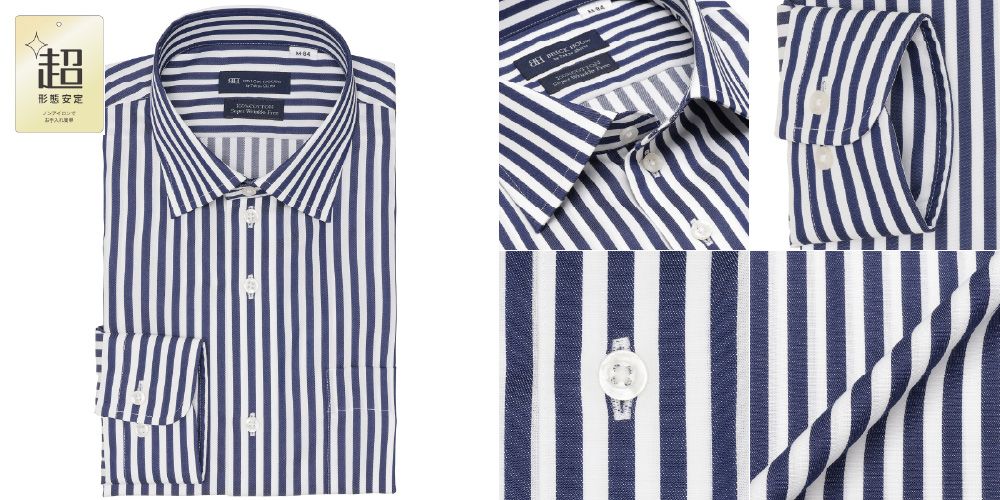 異なる太さのストライプが盛りだくさん!綿100%超形態安定ワイシャツ