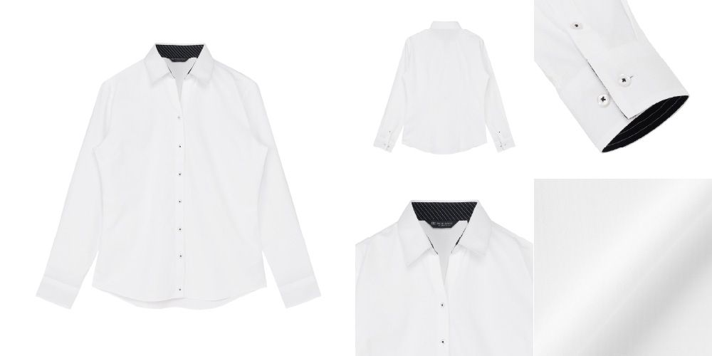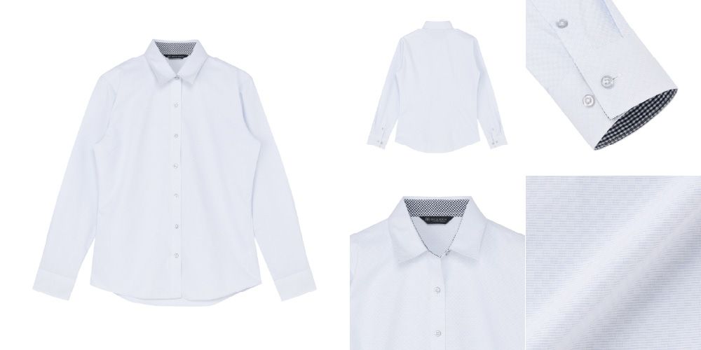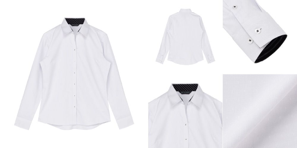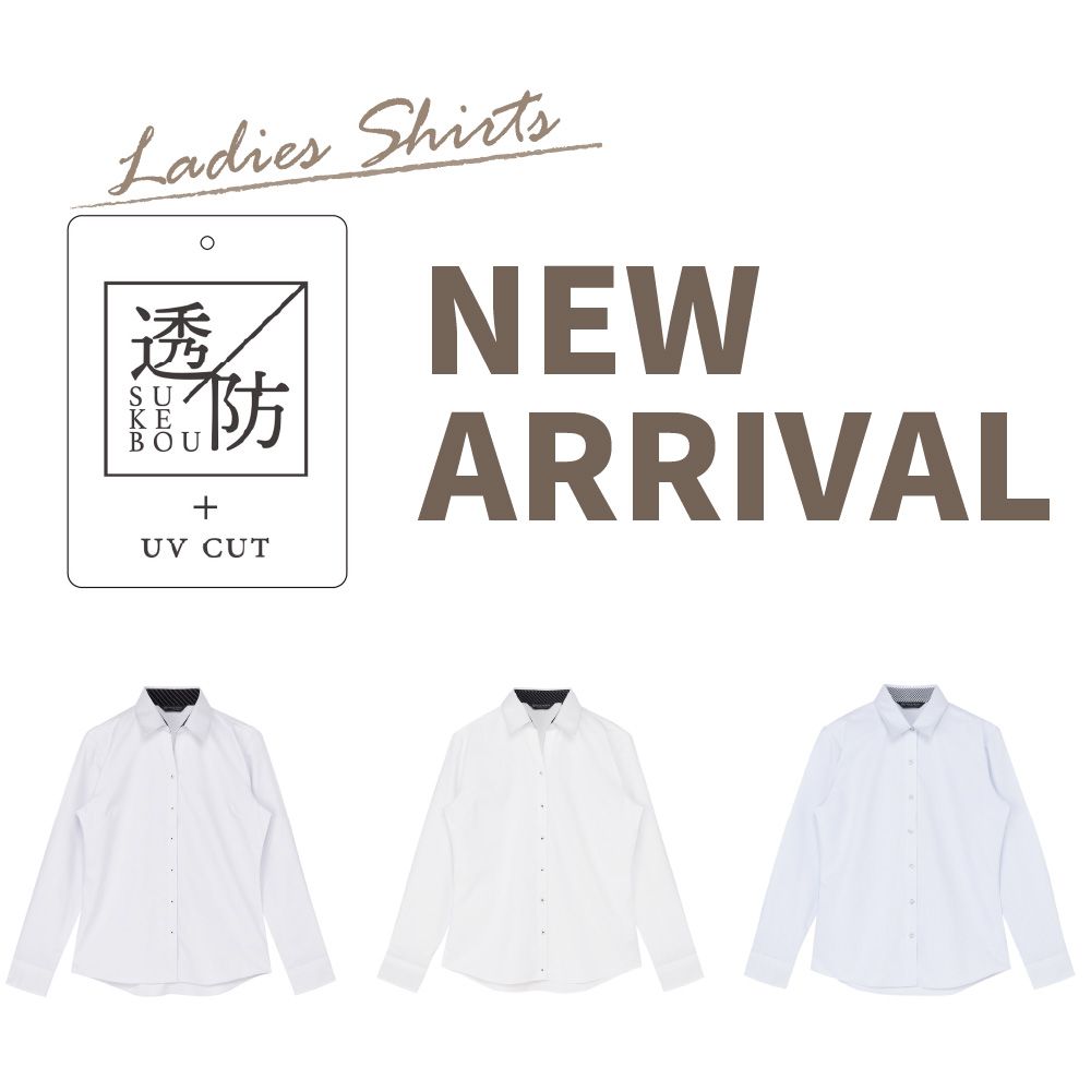 ●【透け防止】 スキッパー 長袖 形態安定 レディースシャツ(ホワイト)