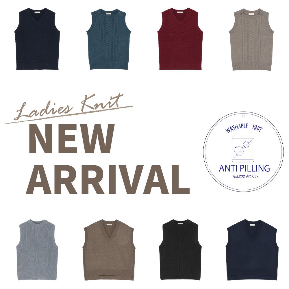 レディースニットベスト続々入荷。秋に向けて少しずつ揃えていきましょう!