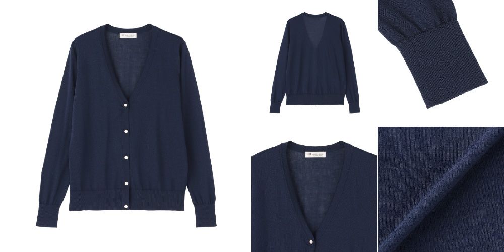 ●ニット ハイゲージ Vネックカーディガン レディース(ネイビー)