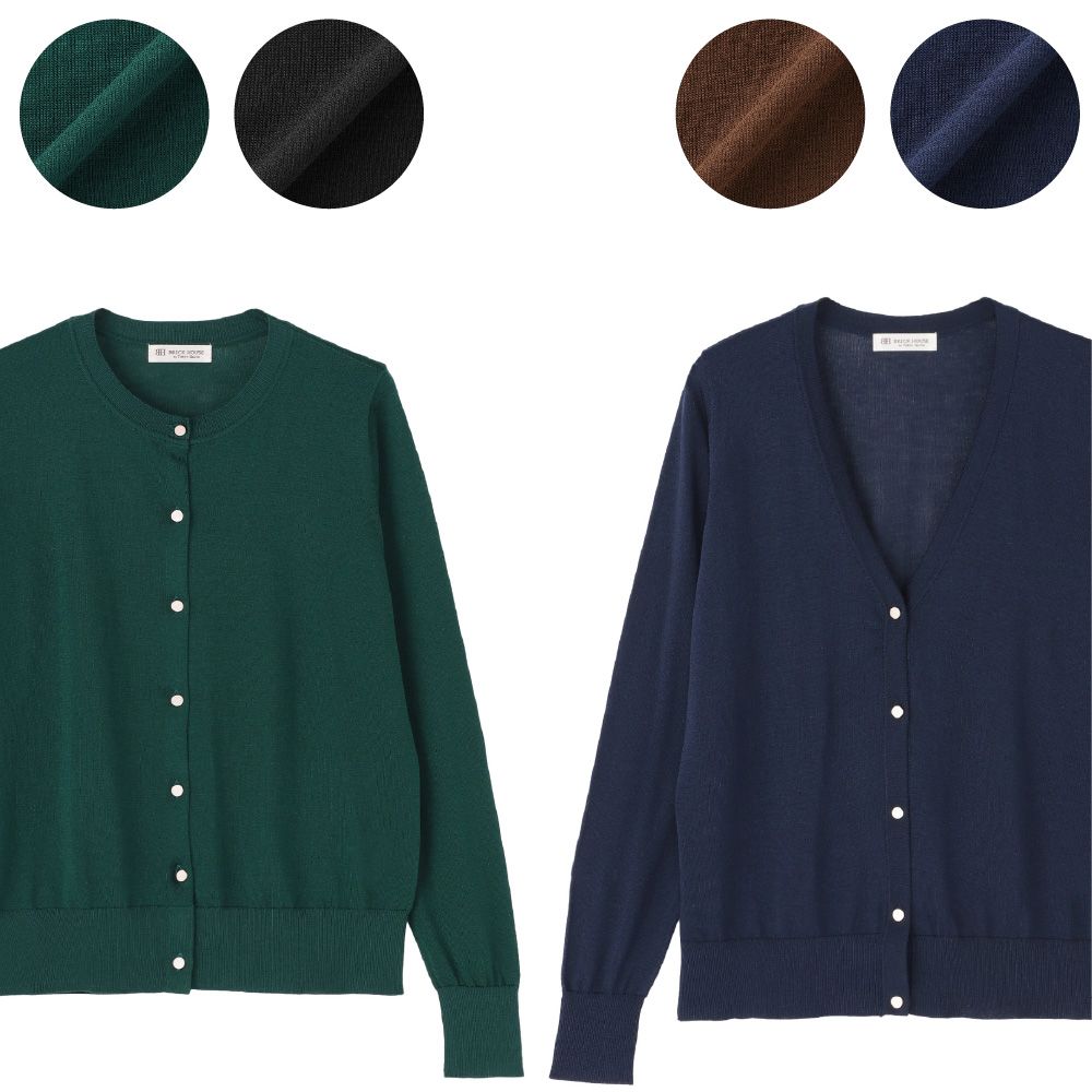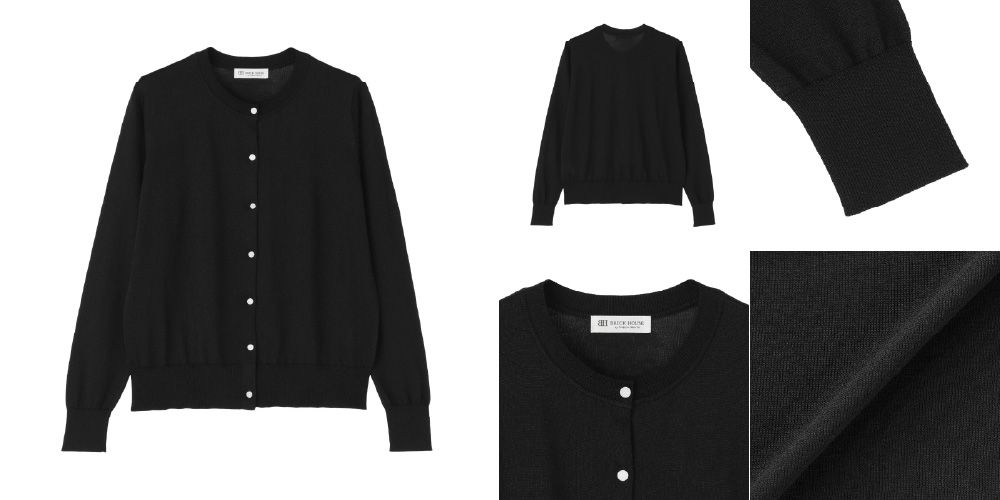 ●ニット ハイゲージ クルーネックカーディガン レディース(ブラック)