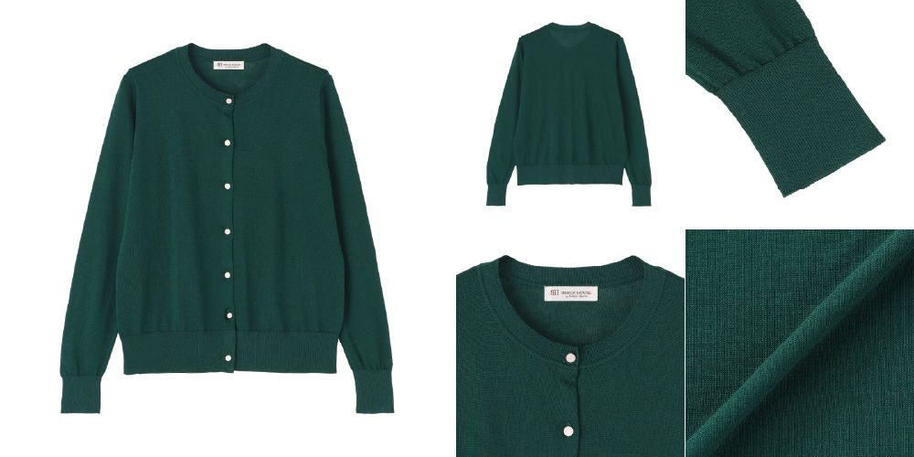 ●ニット ハイゲージ クルーネックカーディガン レディース(グリーン)