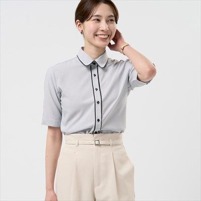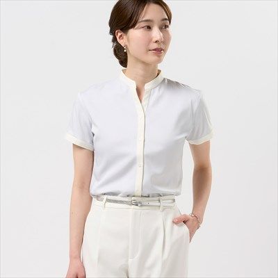 ●【COFREX】 配色スキッパーブラウス 半袖 レディースデザインシャツ