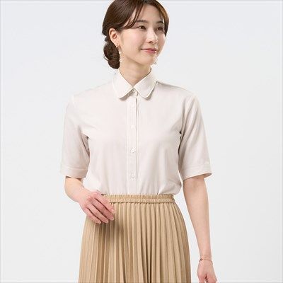 ●【COFREX】 スタンド ピンタックブラウス 五分袖 レディースデザインシャツ