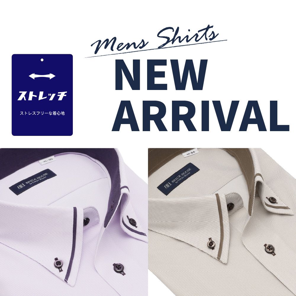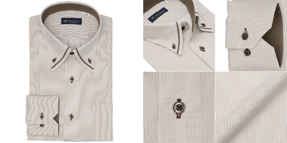 ●ボタンダウン 長袖 形態安定 ワイシャツ ニットシャツ ストレッチ(ブラウン)