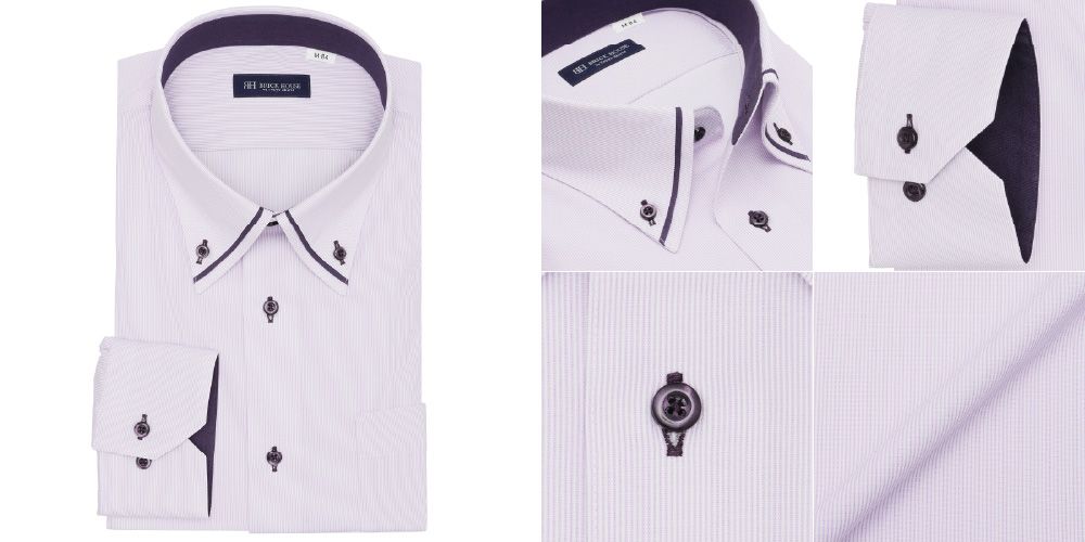 ●ボタンダウン 長袖 形態安定 ワイシャツ ニットシャツ ストレッチ(パープル)