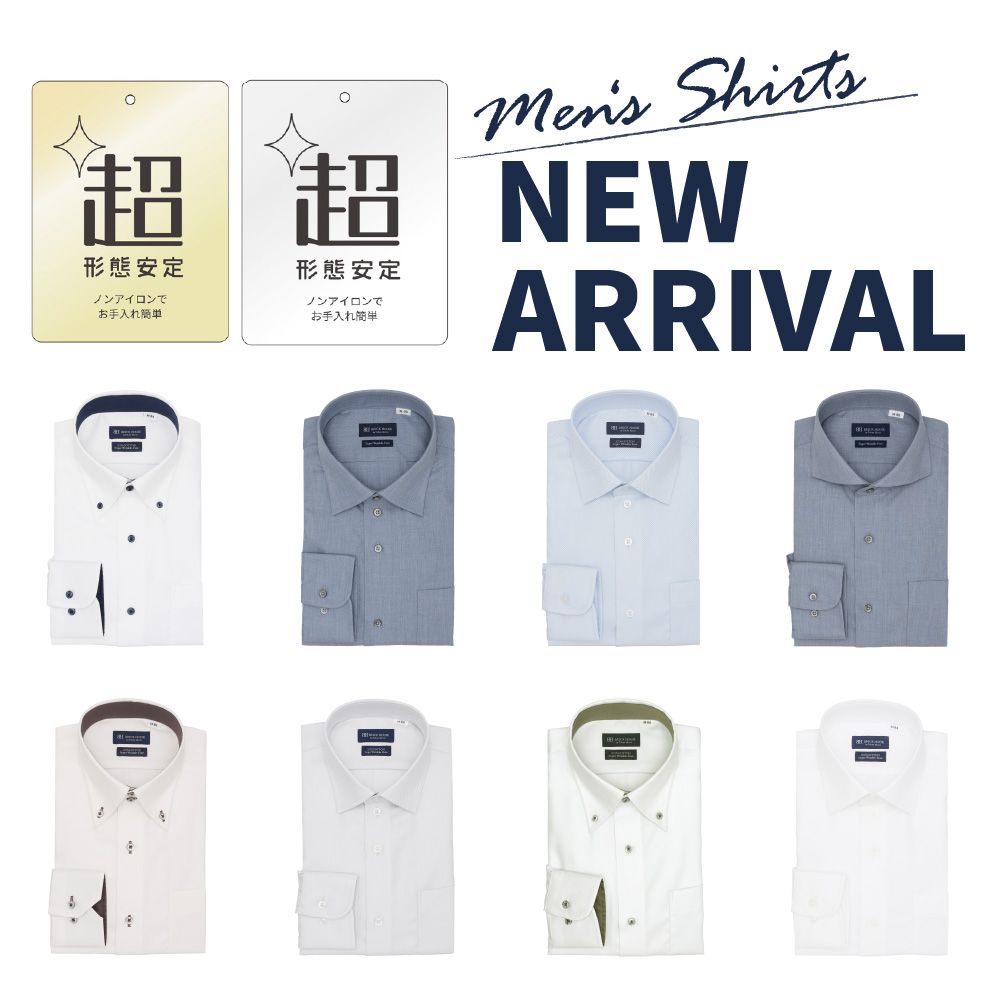 先日レギュラーサイズ・大きいサイズともにメンズ超形態安定シャツ入荷してきました。