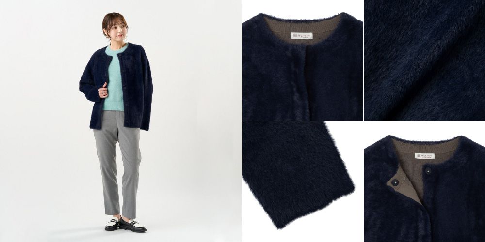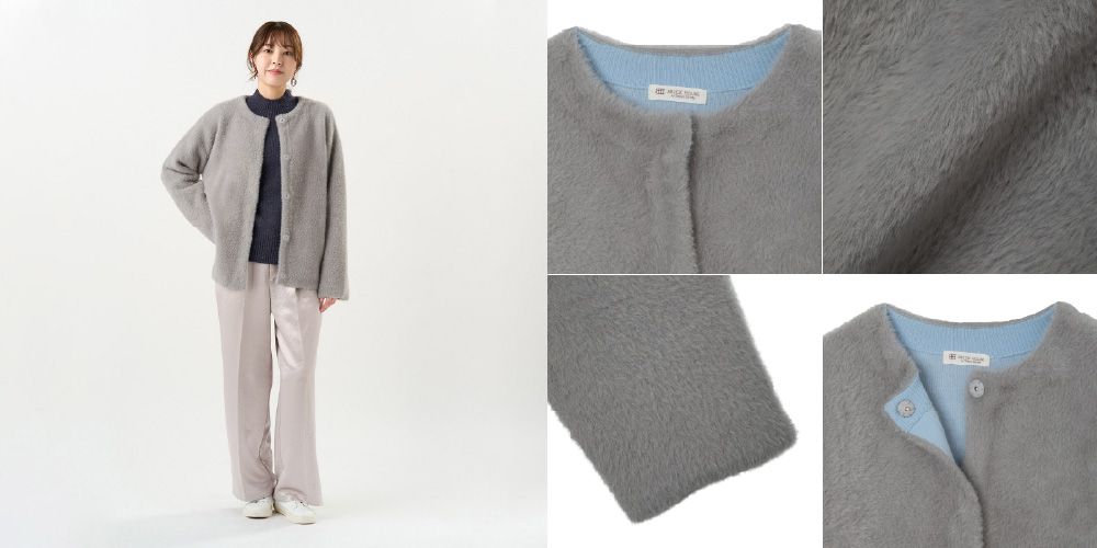 表裏ともに肌触り柔らかな起毛ニット素材で、注目ポイントは表と裏で異なるカラーリング!
