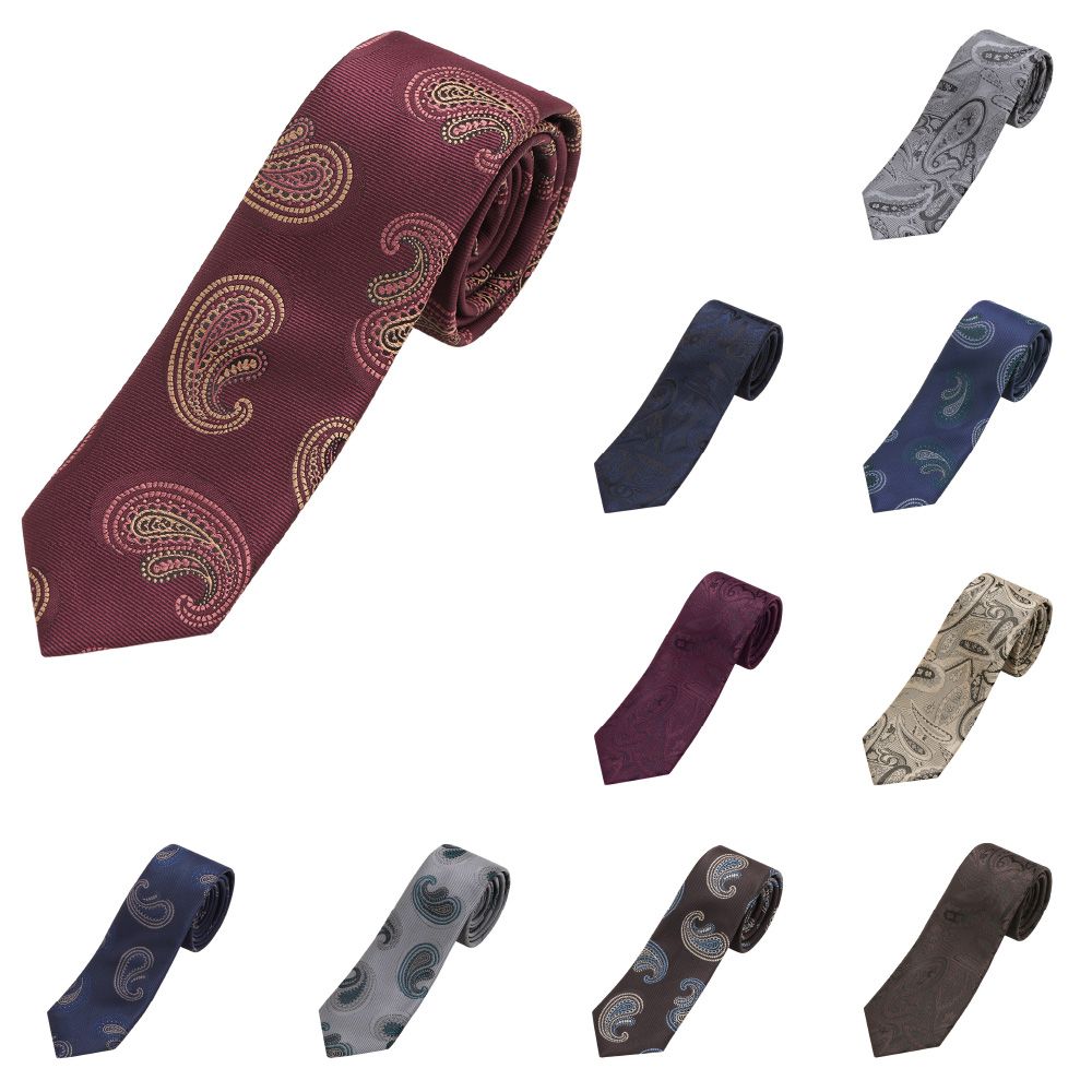 大人の魅力感じるペイズリー柄ナローネクタイ。