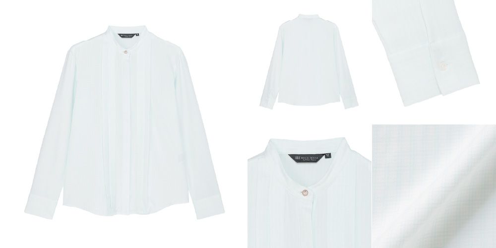 ●【COFREX】 スタンド ビジューブラウス 長袖 レディースデザインシャツ
