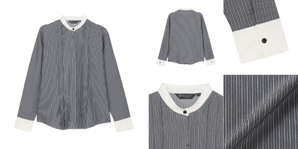 ●【COFREX】 スタンド 配色ブラウス 長袖 レディースデザインシャツ