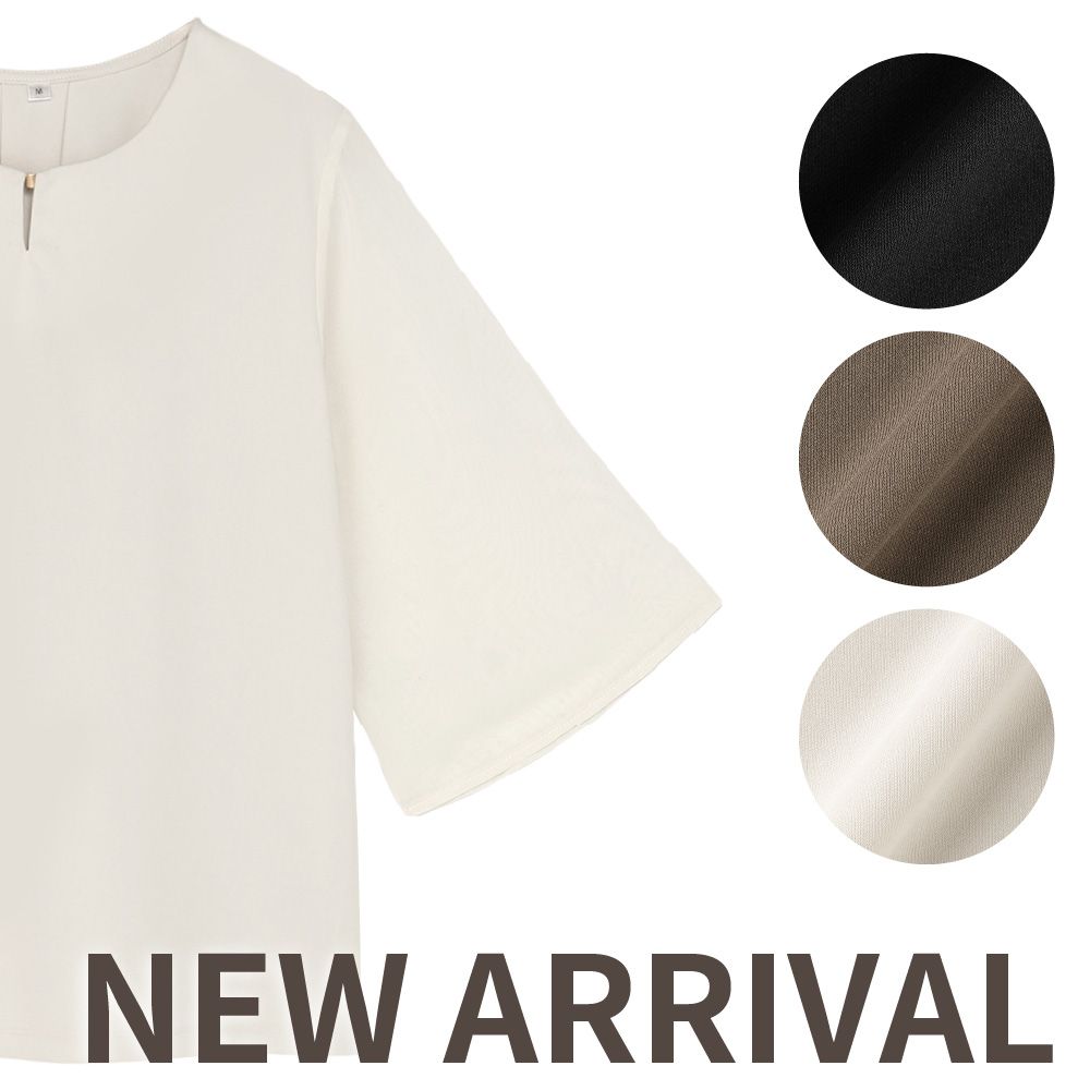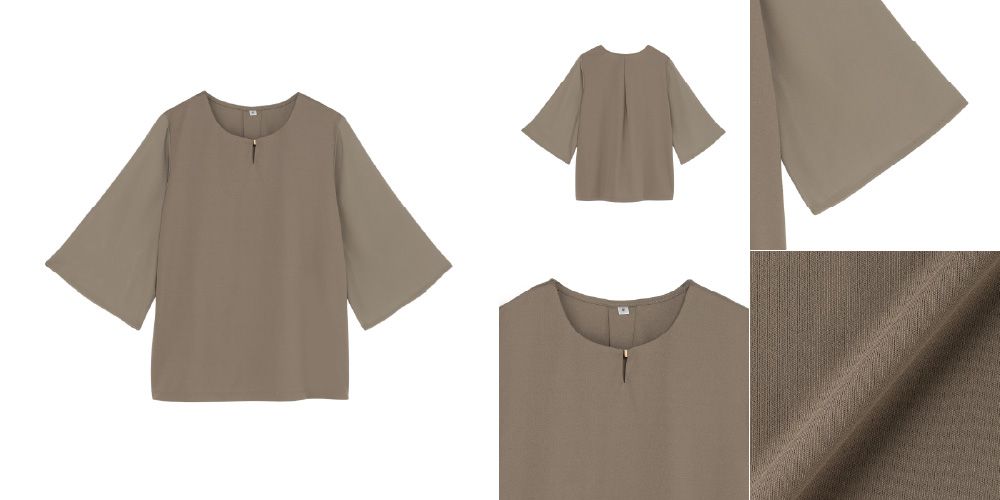 オフィスカジュアルに使いやすいデザインのプルオーバーブラウス。