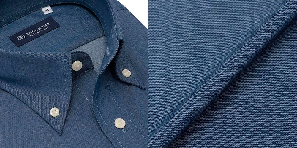 ノーネクタイの時期でもスッキリとした衿元のボタンダウンカラーでスマートな着こなしに◎