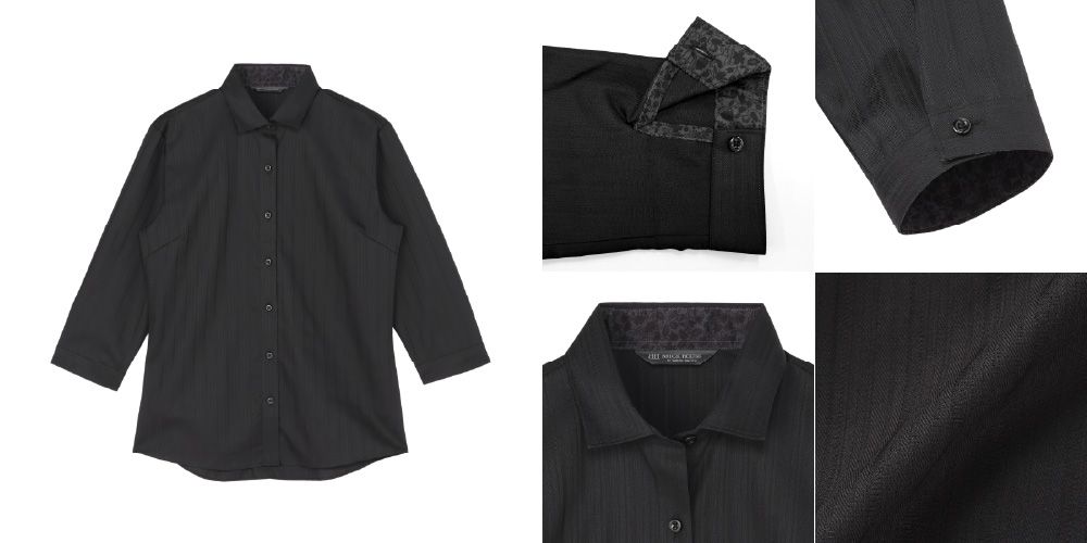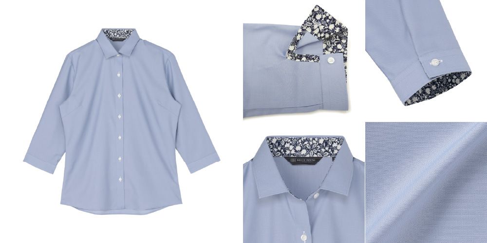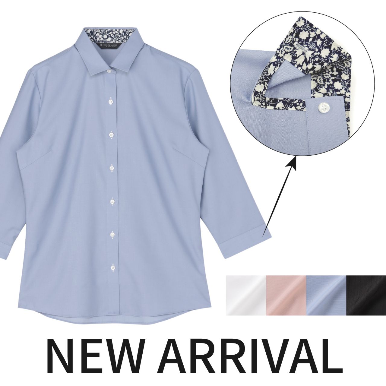 ●ワイド 七分袖 形態安定 レディースシャツ(スモーキーブルー)
