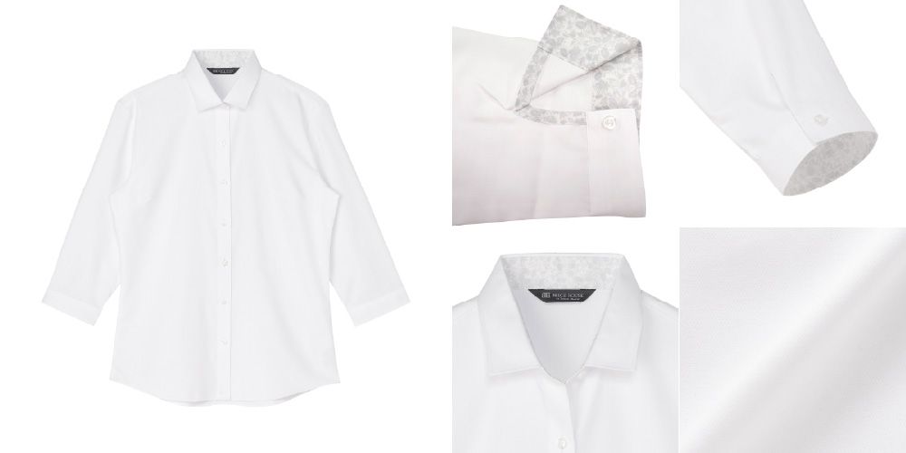 ●【透け防止】 ワイド 七分袖 形態安定 レディースシャツ(ホワイト)