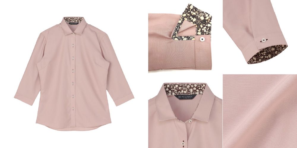 ●ワイド 七分袖 形態安定 レディースシャツ(スモーキーピンク)