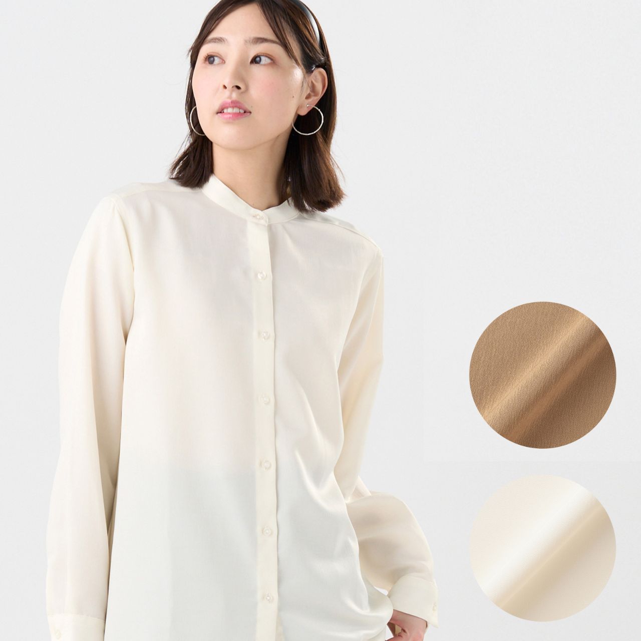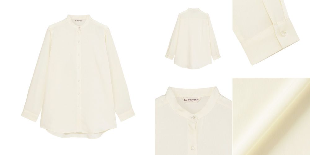 ●サテン ワイドシルエット スタンド衿 シャツ 長袖 レディース