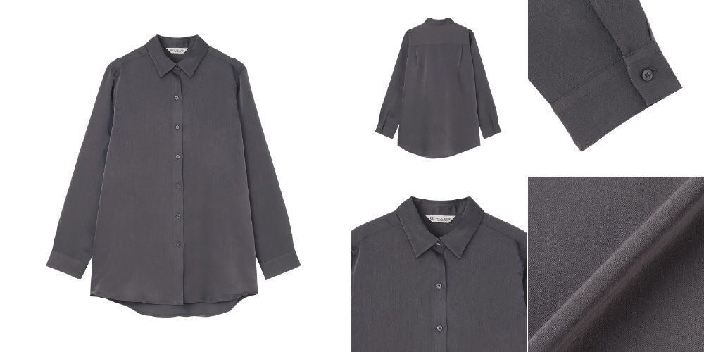 やわらかな光沢感あるサテン生地を使用してゆったりとした着やすい一枚に。