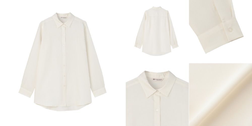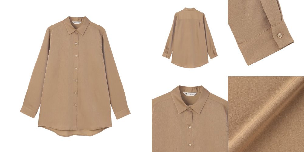●サテン ワイドシルエット レギュラー衿 シャツ 長袖 レディース
